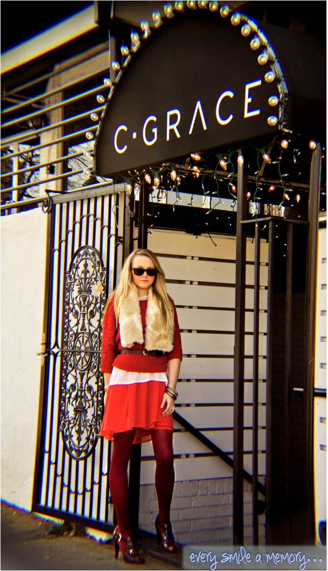 shirt & sweater: old navy// dress (worn as skirt): j patterson kincaid// tights: banana republic// belt: gap// shoes: nine west// fur stole: the limited// sunglasses: ray ban// jewelry: michael kors and forever 21